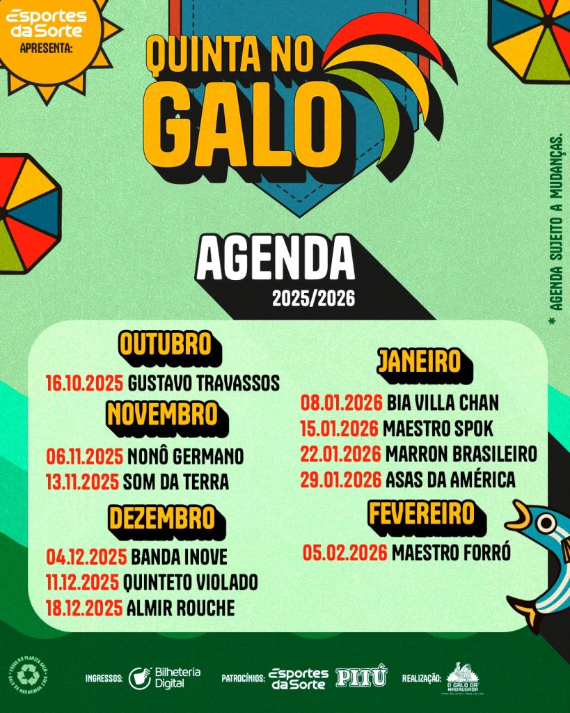 Confere aí a programação completa da Quinta no Galo temporada Carnaval 2026: